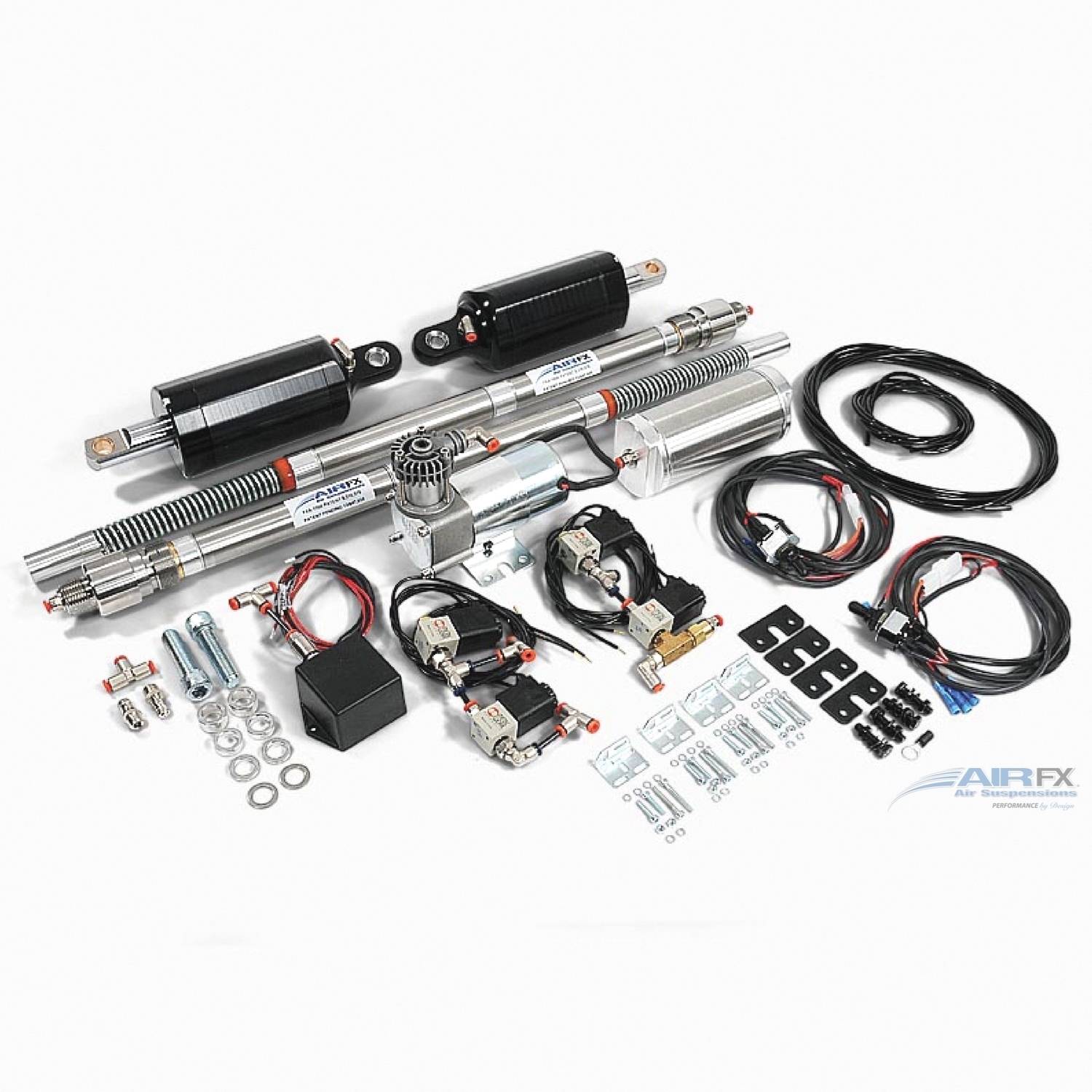 AirFX Kits for Harley-Davidson stock OEM not raked with 18”+21” Front wheel. Protect your bags from road rash when cornering. Our kits are designed to allow the air in the shock to react much faster than a standard hydraulic shock. Ride height adjustments can be made with a smooth ride even with 23” up to 32” diameter front wheels. Larger wheels or low profile tires provide little shock absorption. Our systems make these bikes rideable on normal roads. Now you can adjust up on corners, and drop it down for cruising. Nothing like it on the market… AirFX Air Ride has eliminated the chance of catastrophic air loss that can occur when air bag suspensions burst. We use a piston and cylinder technology for superior performance and durability.