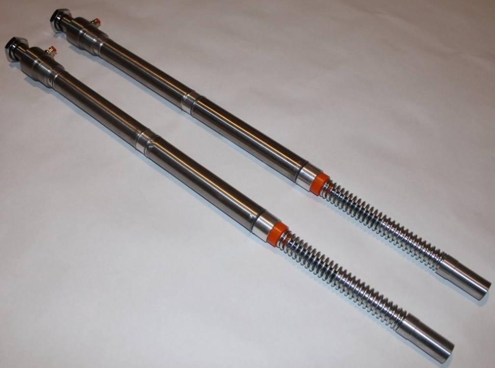 Front cartridge pair for Harley-Davidson Softail applications. Makes it easy to up-grade your factory internal fork assemblies. These replacement style cartridges are a perfect fit. Each cartridge has 2 chambers for lift, and 2 for rebound in axial alignment. This allows us to increase piston surface area, thus reducing air pressure required to lift. To dampen compression during hard braking we have add a booster spring. The result is a much smoother, and consistent ride and increased handling. Each kit is specifically designed to fit your bike without modification and exceeds all manufacture specifications.