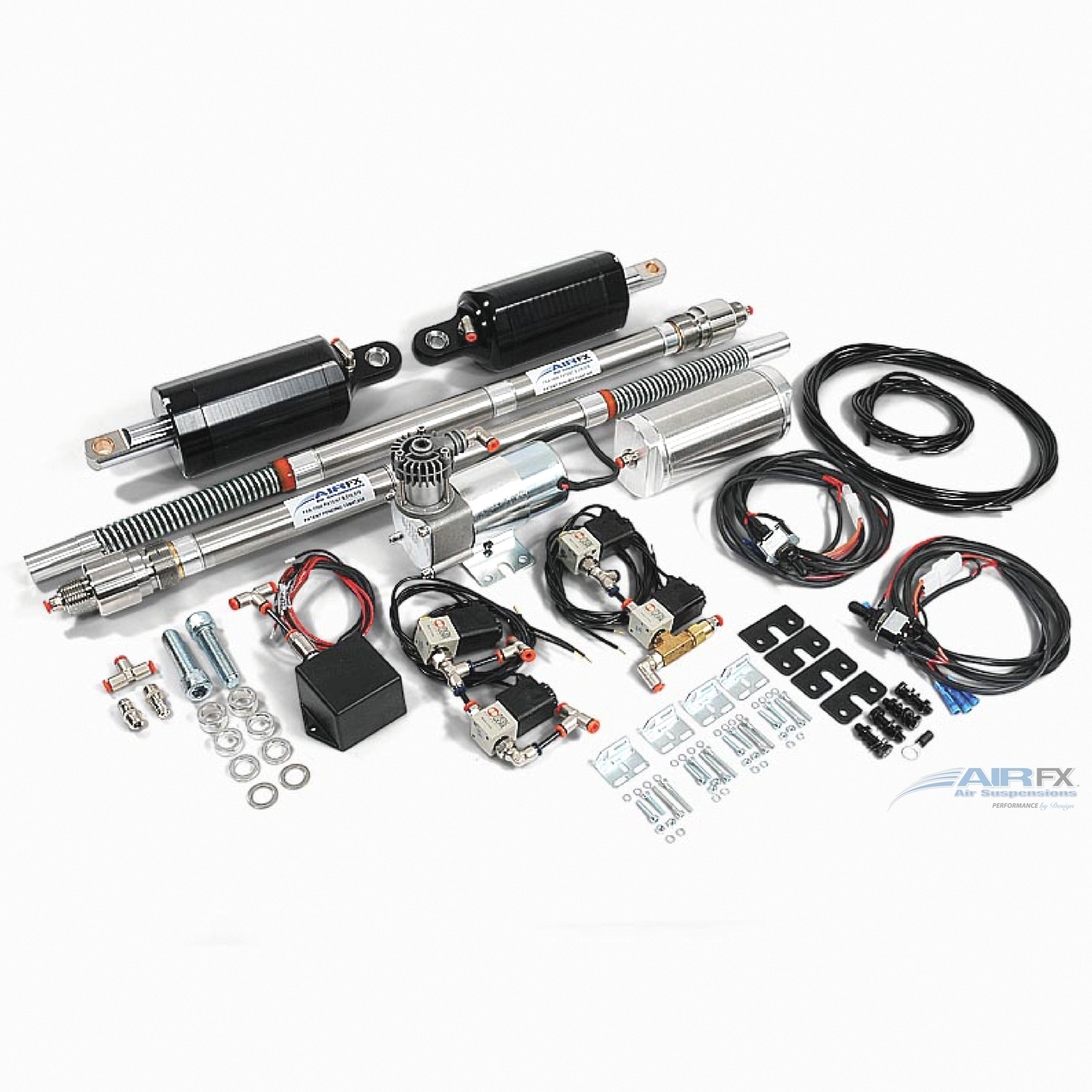 AirFX Brand Kits for Harley-Davidson stock OEM not raked with 18”+21” Front wheel. Protect your bags from road rash when cornering. Our kits are designed to allow the air in the shock to react much faster than a standard hydraulic shock. Ride height adjustments can be made with a smooth ride even with 23” up to 32” diameter front wheels. Larger wheels or low profile tires provide little shock absorption. Our systems make these bikes rideable on normal roads. Now you can adjust up on corners, and drop it down for cruising. Nothing like it on the market… AirFX Air Ride has eliminated the chance of catastrophic air loss that can occur when air bag suspensions burst. We use a piston and cylinder technology for superior performance and durability.