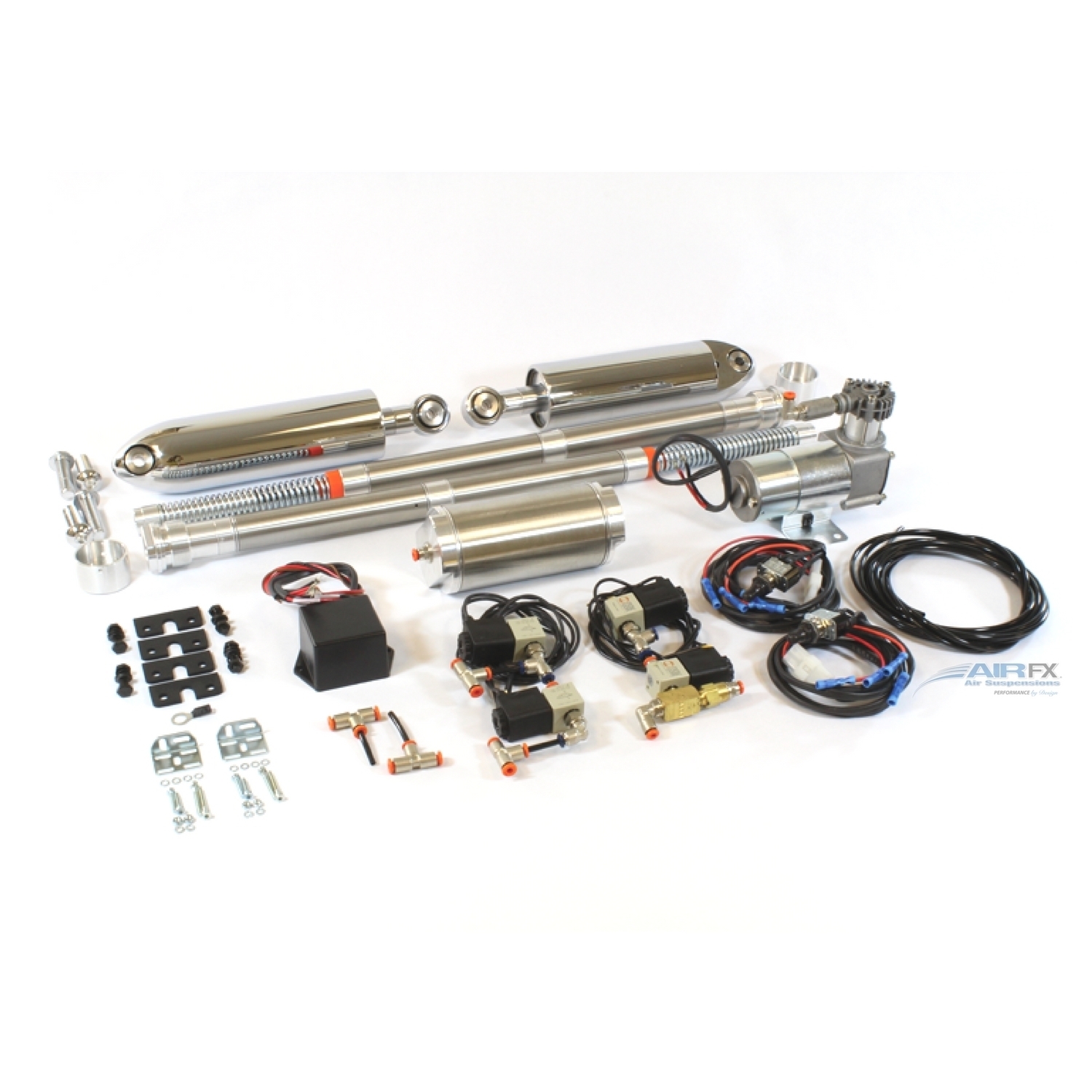 AirFX Kits for Harley-Davidson VRod with raked triple tree with 26” Front wheel. Protect your bags from road rash when cornering. Our kits are designed to allow the air in the shock to react much faster than a standard hydraulic shock. Ride height adjustments can be made with a smooth ride even with 23” up to 32” diameter front wheels. Larger wheels or low profile tires provide little shock absorption. Our systems make these bikes rideable on normal roads. Now you can adjust up on corners, and drop it down for cruising. Nothing like it on the market… AirFX Air Ride has eliminated the chance of catastrophic air loss that can occur when air bag suspensions burst. We use a piston and cylinder technology for superior performance and durability.