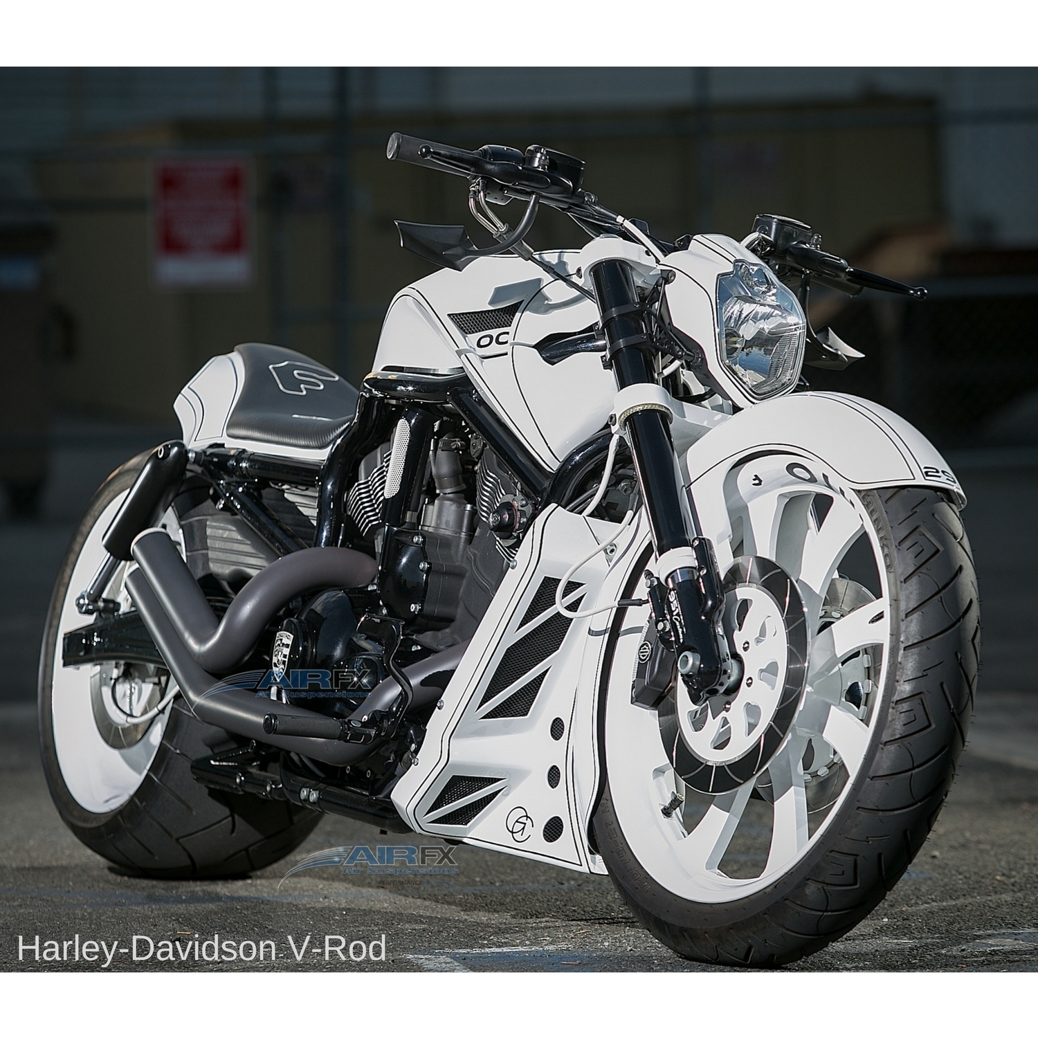 AirFX Kits for Harley-Davidson VROD with raked tree and with 23” Front wheel. Protect your bags from road rash when cornering. Our kits are designed to allow the air in the shock to react much faster than a standard hydraulic shock.