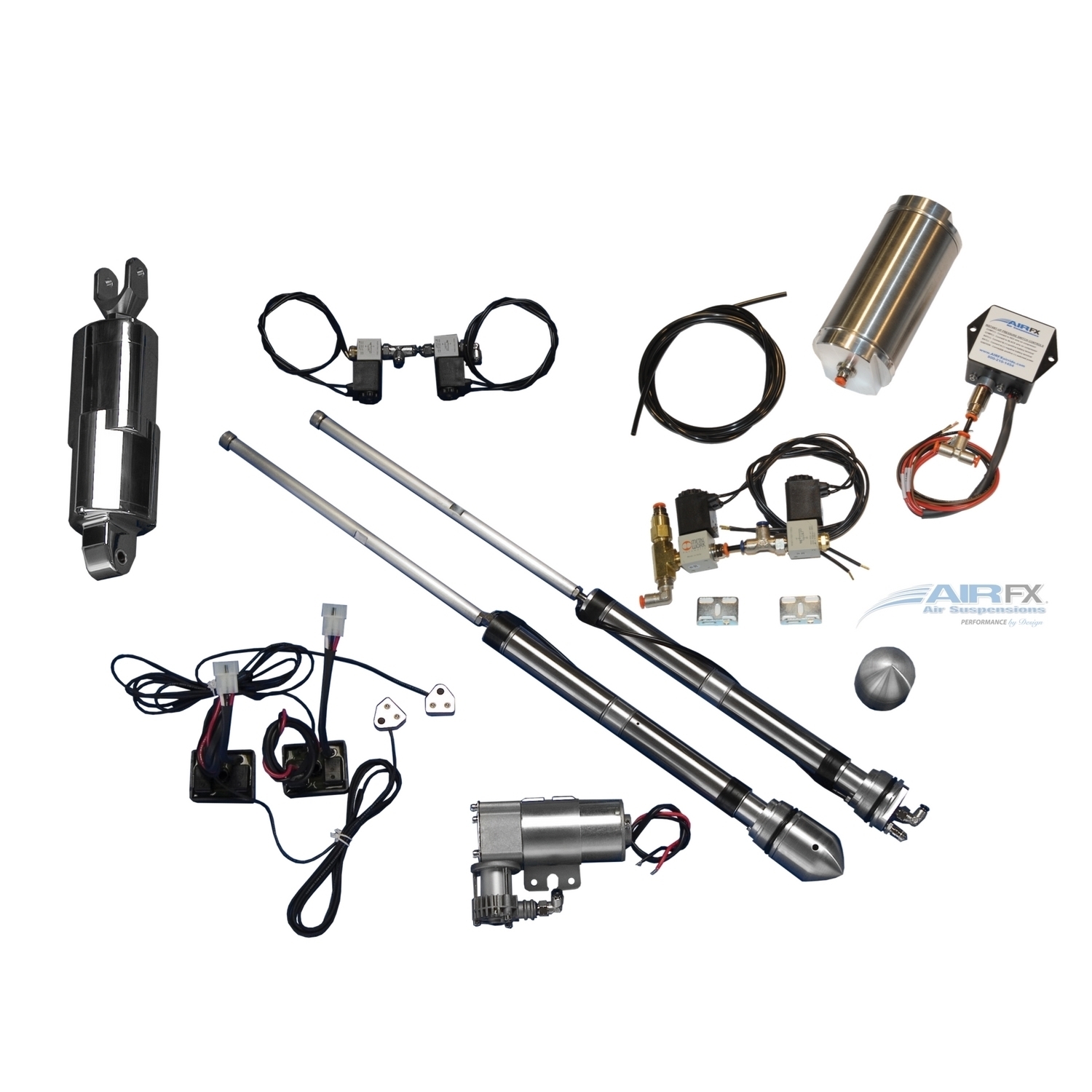 Now you can fine tune your suspension for extreme cornering and braking and quickly adjust back to a comfortable cruising mode. Experience fast responsive, grip and true performance with our sport bike kits, all in a package not any larger than your stock shock. The air in the shock reacts much faster than a standard hydraulic shock. By lowering your bike you will change the center of gravity and your geometry. This makes a huge difference in handling. Each shock has 2 air chambers for lift and 1 for rebound in axial alignment. Rebound is set by adding air to the Schrader valve on the shock, allowing the rider to adjust the ride height and rebound setting.