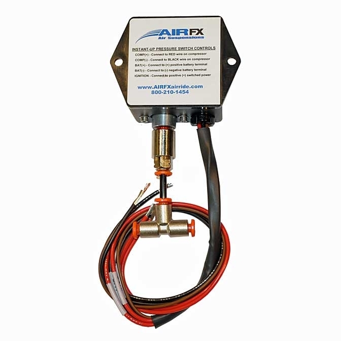 Pressure switch and relay sub-assembly. Pressure switch preset to 250PSI. Wiring includes ignition circuit interlock. Control will turn on the compressor until the sensed pressure reaches 250psi and will shut off. Compressor will turn back on at 230psi. SPECIFY FXA-2000 HI FLOW COMPRESSOR, the standard compressor will not work with this module.