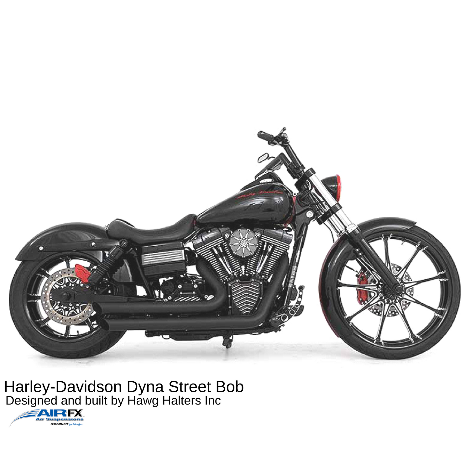 Black. Fits 2005-2017 Harley Dyna motorcycles. Bullet shocks are purpose built for cruisers with exposed rear shocks. The one piece bullet shaped body provides a sleek compact shape that will enhance the look of your bike. Available in chrome and black powder coated finishes, both with chrome plated rod ends and mounting hardware. Spherical upper and lower pivot points provide low friction shock movement minimizing shock reaction time. Controlled rebound is achieved and adjusted via a manual valve on each shock. Custom stroke lengths available.